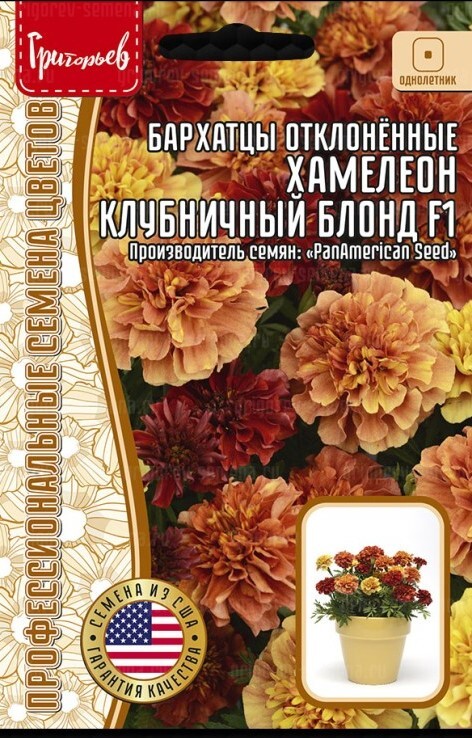 На одном кусте можно увидеть соцветия разной окраски. Вид растения меняется, как в калейдоскопе. На динамику смены тонов влияет температурный фон. В прохладную погоду окраска цветков меняется медленно, при повышении температуры – ускоряется. Куст с хорошим ветвлением, 20-25 см высотой и около 20 см в ширину. Соцветие гвоздиковидной формы, диаметром 6 см, густомахровое. Рекомендуется для оформления садовых цветников и контейнерной культуры. Бархатцы предпочитают солнечные участки с дренированными, плодородными почвами нейтральной кислотности. Растения теплолюбивые, быстрорастущие, взрослые – достаточно засухоустойчивые.