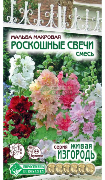 »Роскошные свечи»- карликовые однолетние растения с крупными полумахровыми цветками самой разнообразной окраски. Традиционно мальва выращивается как двулетник, реже как однолетник.