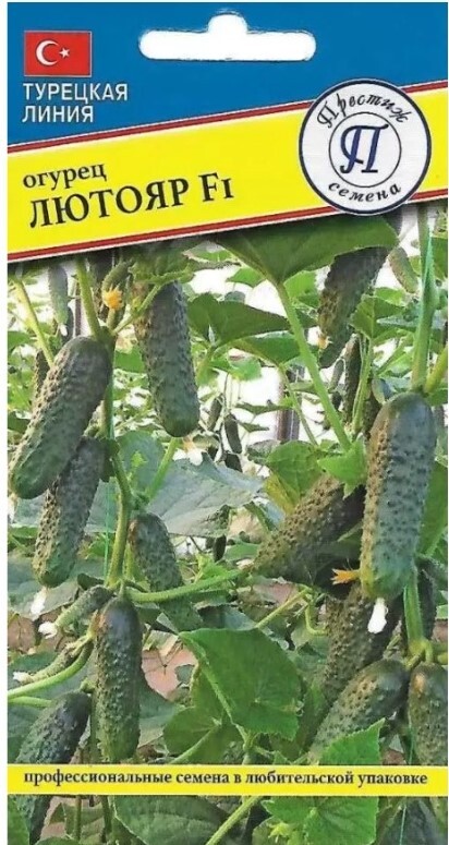Ультраранний гибрид, партенокарпического типа выведен селекционерами из Турции. Его выращивают в открытом и защищенном грунте. Идеально подходит для весеннего и осеннего оборота. Лютояр F1 – корнишонный огурец, отличающийся высоким уровнем урожайности и продолжительным периодом цветения. Само растение на вид средневетвистое с темно-зелеными листьями. В листовой пазухе образуется 2-3 завязи. Плоды имеют небольшой размер, длина составляет 12-13 см, масса плода варьируется от 100 до 110 г, в диаметре – порядка 2-3 см. По форме напоминают вытянутый цилиндр, цвет – насыщенный зеленый. Огурцы в процессе роста не желтеют. Кожура неплотная, мякоть хрустящая, семян небольшое количество, пустоты отсутствуют. Вегетационный период продолжается около 40-50 дней. С каждого куста можно собирать до 7 кг урожая. Высокая устойчивость к серой и белой гнилям и переноспорозу. Рекомендуется для употребления в свежем виде и консервации.