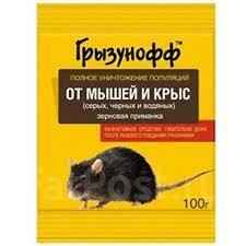 Гранулированная и зерновая приманки "Грызунофф" применяются для борьбы с крысами и мышами в быту. "Грызунофф" уничтожает популяции крыс и мышей полностью на 4-8 день после поедания грызунами 1 дозы препарата.