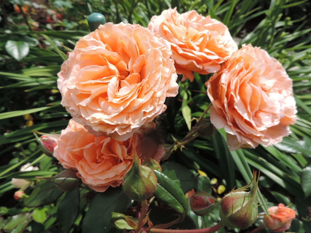 Цветки оранжево-розовые, крупные, махровые, диаметром 8–13 см, с волнистым лепестками; по мере распускания форма меняется от округлого бутона до чашевидной. Дождя и солнца не боятся.