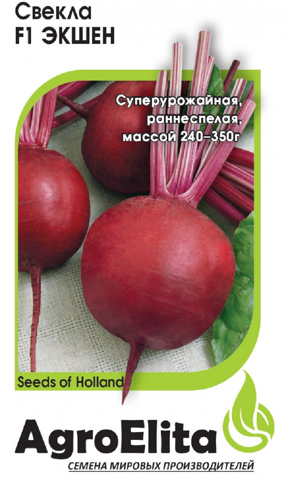 Раннеспелый (105 дней от всходов до технической спелости) гибрид. Розетка листьев полупрямостоячая. Корнеплод округлый, опробковение головки слабое. Мякоть темно-красная, без колец. Масса корнеплода 240-350 г. Вкусовые качества отличные. Достоинства сорта: суперурожайный, высокий выход товарной продукции, корнеплоды хорошо хранятся. Рекомендуется для использования в кулинарии и для зимнего хранения.