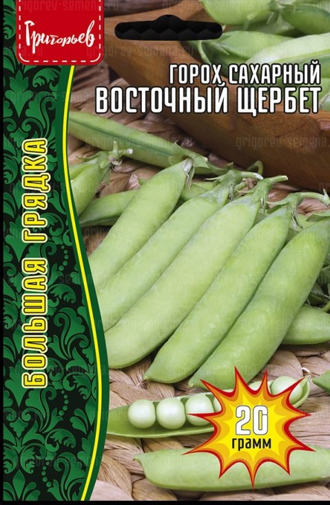 Среднеранний сорт гороха, который созревает примерно через 55-65 дней после появления всходов. Он может достигать высоты до 100 см. Плоды этого сорта имеют светло-зелёный цвет и не содержат пергаментного слоя. Длина стручков составляет около 10 см, а внутри находится 5-7 горошинок одинакового размера. Стенка бобов толстая и мясистая, а вкус плодов сладкий, поэтому их рекомендуется употреблять в пищу целиком и в свежем виде. Плоды этого сорта богаты полезными веществами: витаминами, каротином, крахмалом и сахаром. Особенно ценен этот сорт за высокое содержание белка — около 24-26 %. Растение отличается устойчивостью к заморозкам, высокой урожайностью и неприхотливостью в уходе.