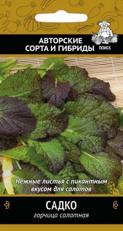 Среднеспелый сорт. Период от всходов до сбора урожая 22-25 дней. Листья крупные, цельные, тёмно-зелёные, с интенсивным антоциановым оттенком, со слабоострым привкусом, напоминающим столовую горчицу.Масса растения 60-70г. Ценность сорта: высокая облиственность и устойчивость к стрелкованию. Растения дают нежную витаминную продукцию с ранней весны до поздней осени. Используются в свежем виде в салатах.